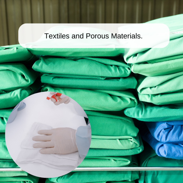 - Additional sterilisation materials include porous, rubber, plastics, lab waste, culture mediums, glass, food and textiles.